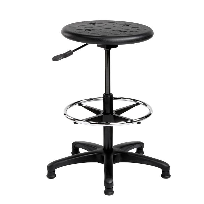 Deze ronde kruk is voorzien van een kunststof zitting en heeft daarnaast ook een voetenring.