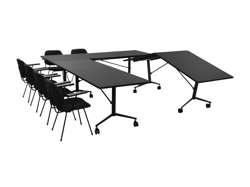 Een grote inklapbare vergadertafel verrijdbaar op wielen. De tafel is extra compact op te bergen omdat deze verticaal in klapt. Met een bladverbindingsset kunt u de Fold tafels aan elkaar koppelen.