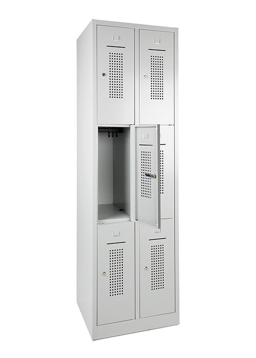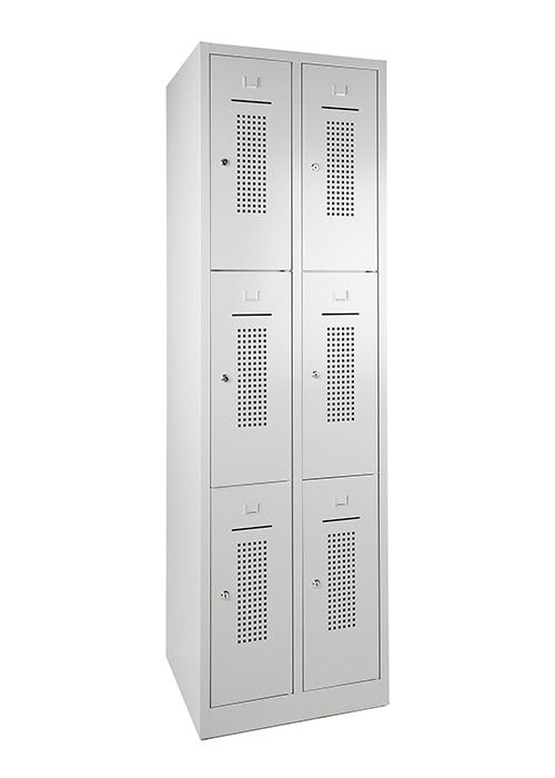 - 2x kolommen met elk 3x lockers onder elkaar (2×3; 6-deurs)