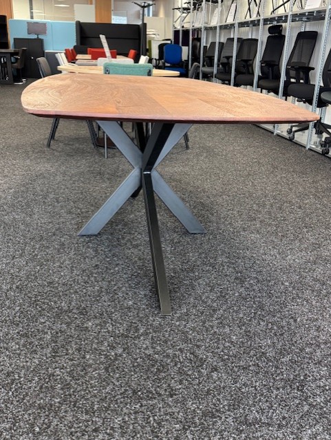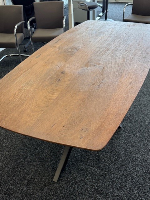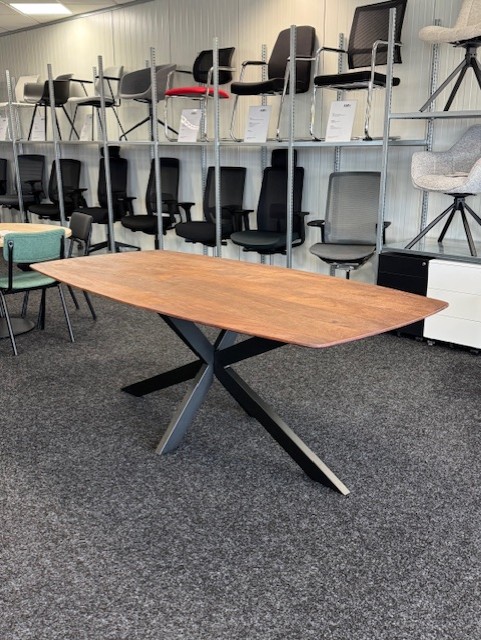 Deze prachtige bruine Deens ovalen vergadertafel is werkelijk een pronkstuk! Het blad in de kleur bruin, staat zeer elegant in uw vergaderkamer. De vergadertafel is gemaakt van hoge kwaliteit massief mangohout.